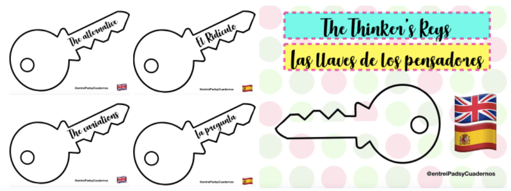 Son las llaves de los pensadores o The Thinker’s Keys! Son rutinas de pensamiento diferentes, muy variadas que fomentan la creatividad y el pensamiento crítico. Las dos principales culpables de que esté interesadísima en probar esas rutinas son Lorena, de @la.clase.de.lore y Berta de @ennuestraclasedeprimaria.