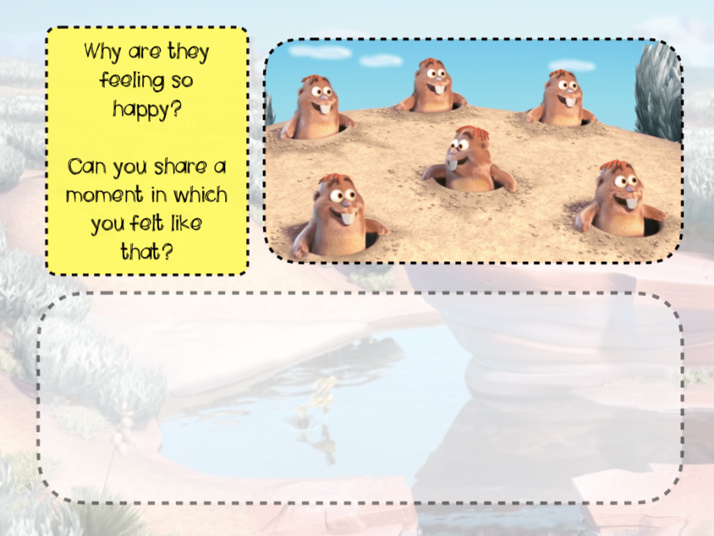 Nos estuvimos con esta actividad durante un total de 6 sesiones porque a los alumnos les gustó mucho y todos querían opinar y participar y, cuando los alumnos quieren compartir experiencias y sentimientos, no hay que cortar. Quizás a vosotros os dure más, o menos.