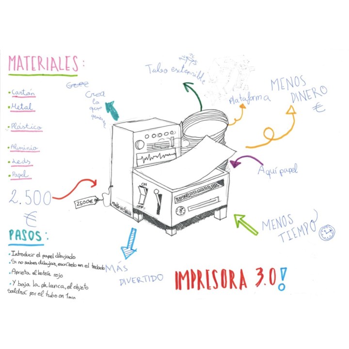 El siguiente paso ha sido crear un boceto a nivel individual en dos minutos para facilitar compartir las ideas individuales y encaminar el boceto grupal. Una vez hecho esto, han empezado a pensar en la características del producto, los materiales, su funcionalidad… con el objeto de ir definiendo su forma final.