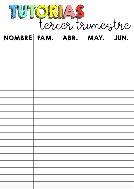 Con este material se pretende dar respuesta visual y efectiva a las tutorías con familias y alumnos. En mi colegio, los tutores debemos tener una reunión trimestral e individual con cada familia así como hablar con los niños de manera individual una vez al mes para dar respuesta a las necesidades que les puedan surgir en el ámbito personal, social y académico.