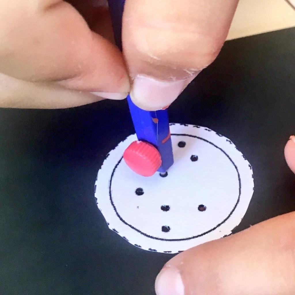 Se trata de un taller donde se les propone a los alumnos realizar una especie de catalejo donde proyectar una constelación. Este catalejo se construye con un rollito de papel higiénico; por lo cual, es una manualidad súper sencilla de hacer.