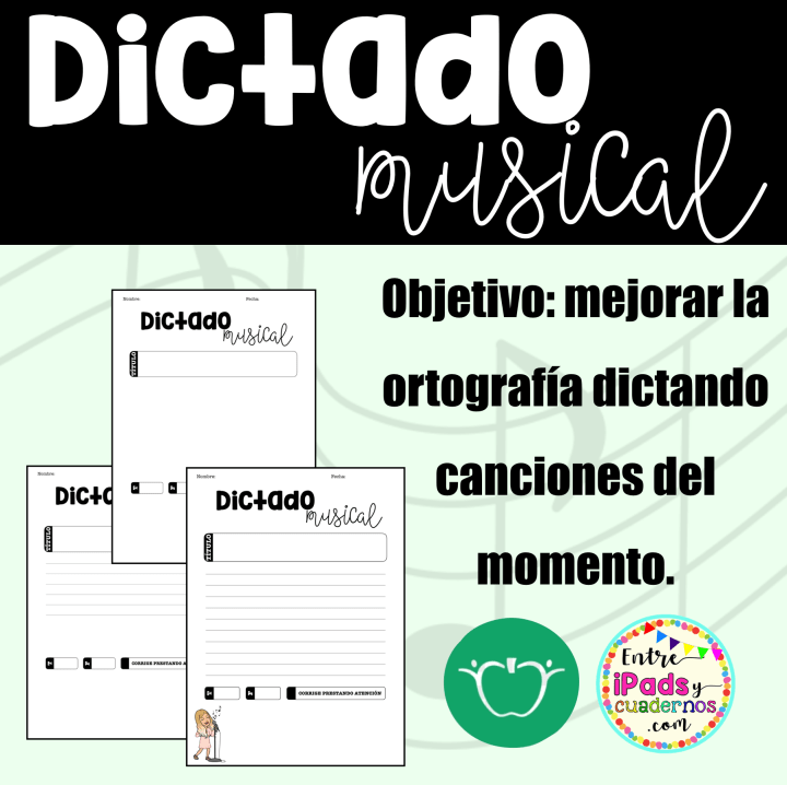 ¡Hola! Hace un par de semanas os compartí un recurso en forma de Carnet Ortográfico para trabajar la ortografía que nos permite ir centralizando los diferentes Kahoots, pruebas o juegos. Al compartirlo en Instagram, recibí otras sugerencias muy interesantes y, entre ellas, lo que hoy os presento: el dictado musical. Esta idea surgió a raíz de que, en Instagram, El Rincón de Francés comentase en mi publicación: