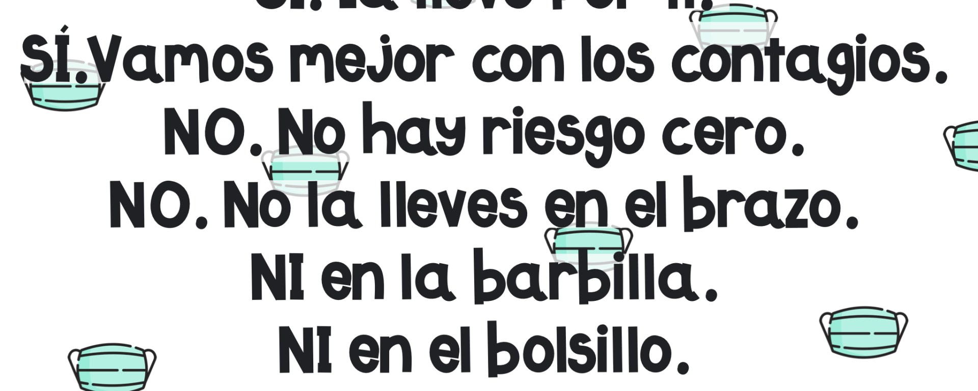 Hoy vengo un poco no sé si protestona o reivindicativa pero es que llevo varios días paseando tanto por el centro como por el extrarradio y se me cae el alma a los pies cuando veo a tantísimas personas de diversas edades sin mascarilla… o con la mascarilla en la barbilla, o con la nariz fuera, o en el codo…