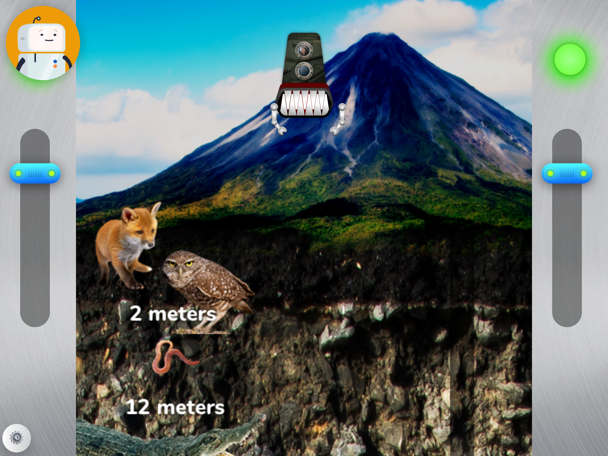 Tras descargar varias apps, di con esta y me quedé maravillada. Tiene vídeos explicativos, tienes juegos donde, por ejemplo, para entender las capas de la tierra, tienes que maniobrar con una excavadora, excavando desde la superficie y te va mostrando qué seres vivos u objetos encuentras a 2 metros, a 12, a 200 metros, a 1km… y así van adquiriendo conciencia de lo gruesa que es la capa más fina… Tiene juegos al finalizar los vídeos, tiene niveles…