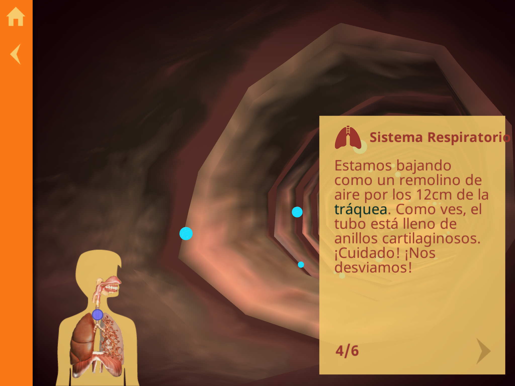 - Te explica el proceso: por ejemplo, te va guiando desde que le das un mordisco a una galleta hasta que termina el proceso digestivo… viajas por el interior del cuerpo humano y a cada paso, te van saliendo explicaciones.