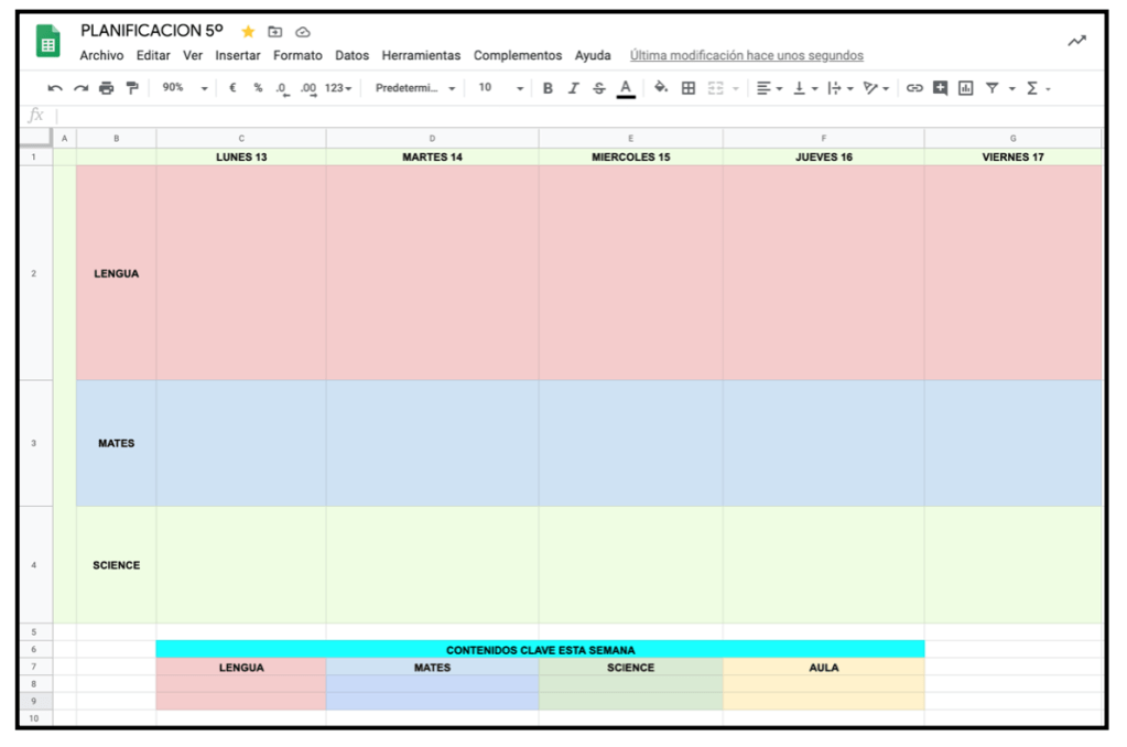 Ya no hablamos de coles de 6 vías que coordinarse se complica… lo más normal es que seáis tu compi y tú mano a mano… Desde que empecé, me he coordinado de miles de maneras diferentes… he utilizado un Excel (antes de que existiera la nube) y ambas escribíamos lo mismo en el ordenador, me he coordinado en iDoceo, me he coordinado en documentos de Google, y por último, me he coordinado y me coordinaré con el Google Sheets. Te haces tu plantilla, que compartes con tus paralelas y podéis ir escribiendo las tres a la vez, o una solo… y cualquier modificación os saldrá a las tres a la vez. ¡¡Ganas tiempo, sí o sí!! Arriba, los días. En filas, las asignaturas. Te dejo la imagen de mi Instagram donde encontrarás unas stories explicando este método: