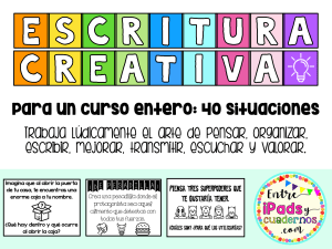 Para trabajar la escritura creativa tengo dos sets diferentes, uno que está formado por 40 tarjetas con situaciones muy diferentes y otro que son ruletas, las cuales se da una a cada equipo y van girando las flechas o bien en equipo y para todos café o de uno en uno. De normal doy una a cada equipo porque así son historias diferentes…