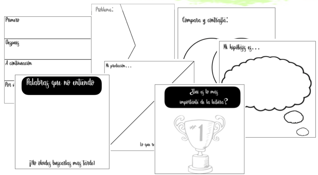 Esta actividad nos sirve para que nuestros alumnos empiecen a organizarse en el típico post-it. Al estar impreso, les resulta mucho más sencillo y no sufren del odiado síndrome de ‘folio en blanco’, o ‘post-it vacío’ en este caso. Además, dependiendo de la plantilla, podemos ir un pasito más allá e ir introduciéndoles a dinámicas de pensamiento crítico y pensamiento activo como son los diagramas de Venn, hipótesis, organizadores del lenguaje…