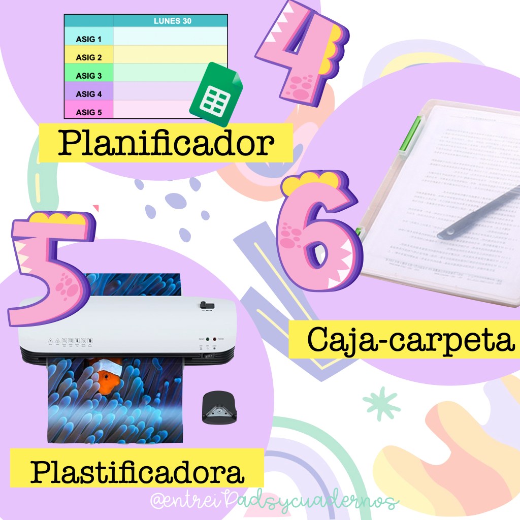 5️⃣ Plastificadora. Para aquellos materiales que voy creando y que quiero conservar a lo largo de los cursos. No son muchos pero si tengo que depender de la plastificadora del centro, vamos listos…