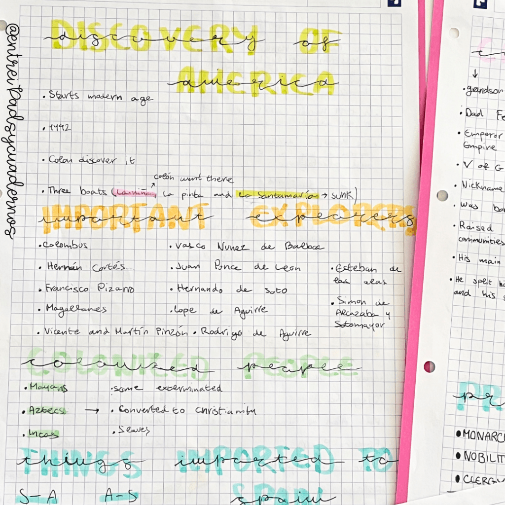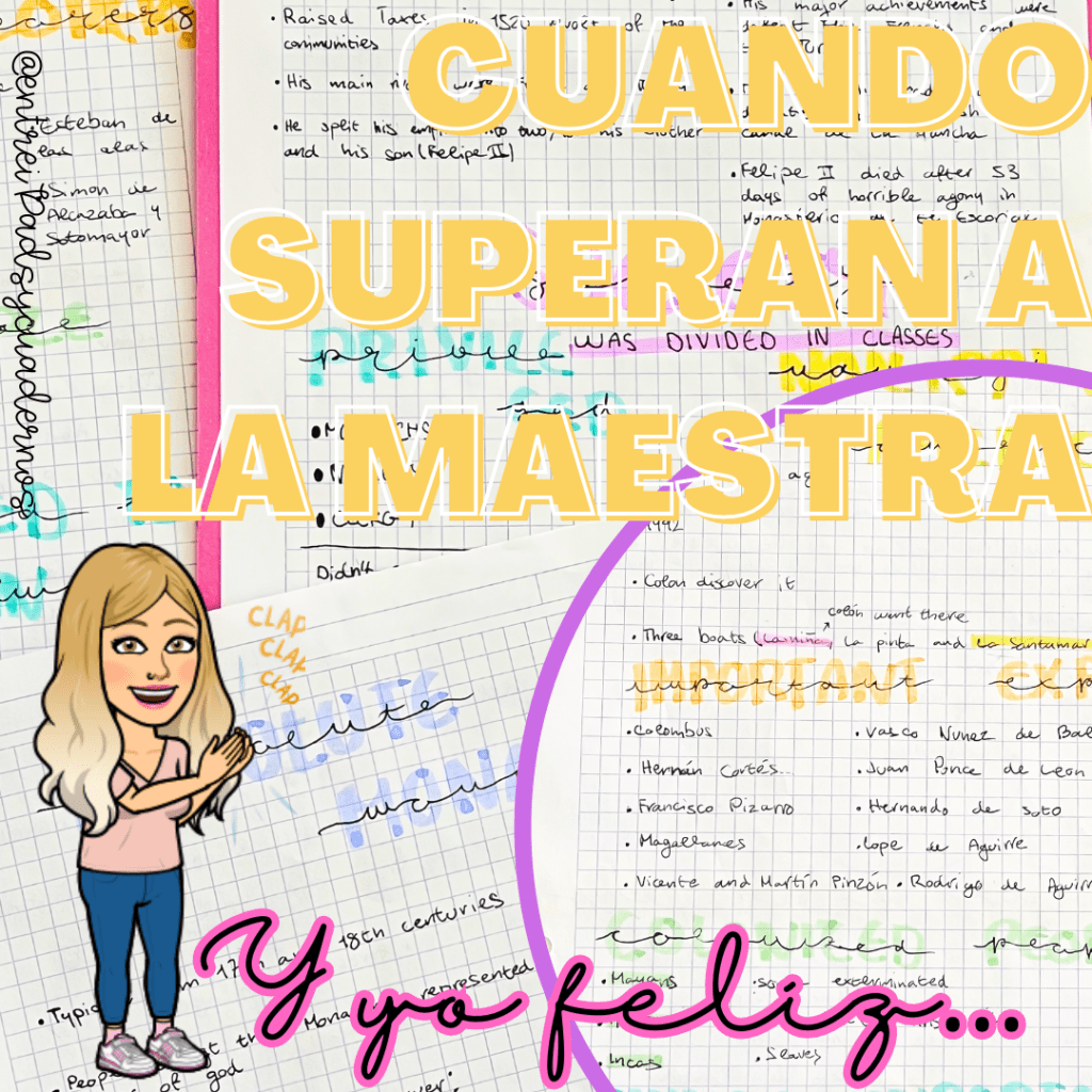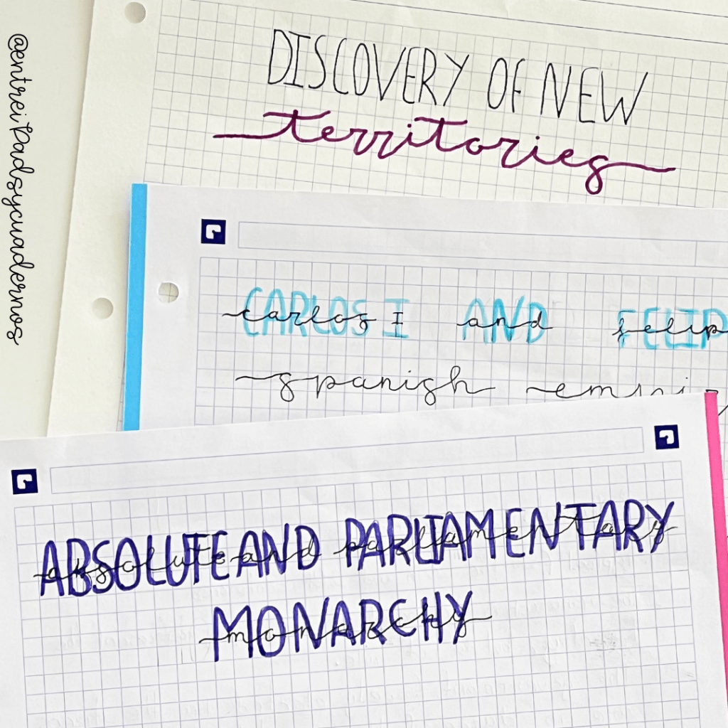 Una caligrafía cuidada, colores acertados y una disposición ordenada. Mi meta es que aprendan a cuidar sus apuntes porque eso facilita el aprendizaje.