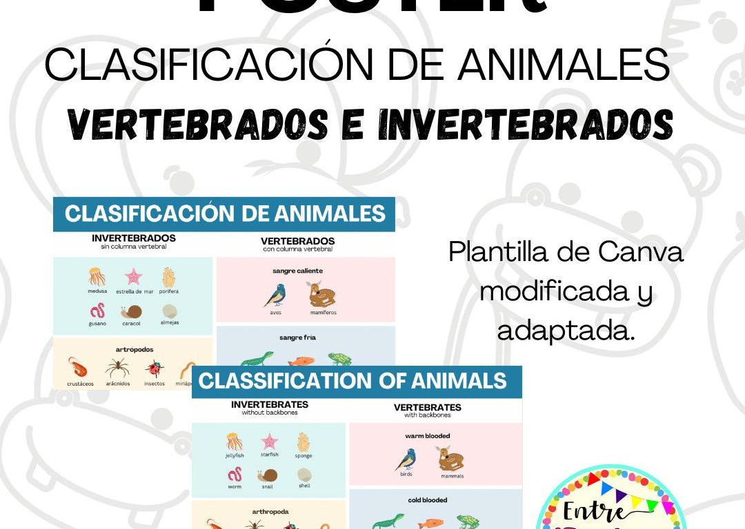 Con este póster, vamos a ayudar a nuestro alumnado a visualizar la clasificación de animales en vertebrados e invertebrados.